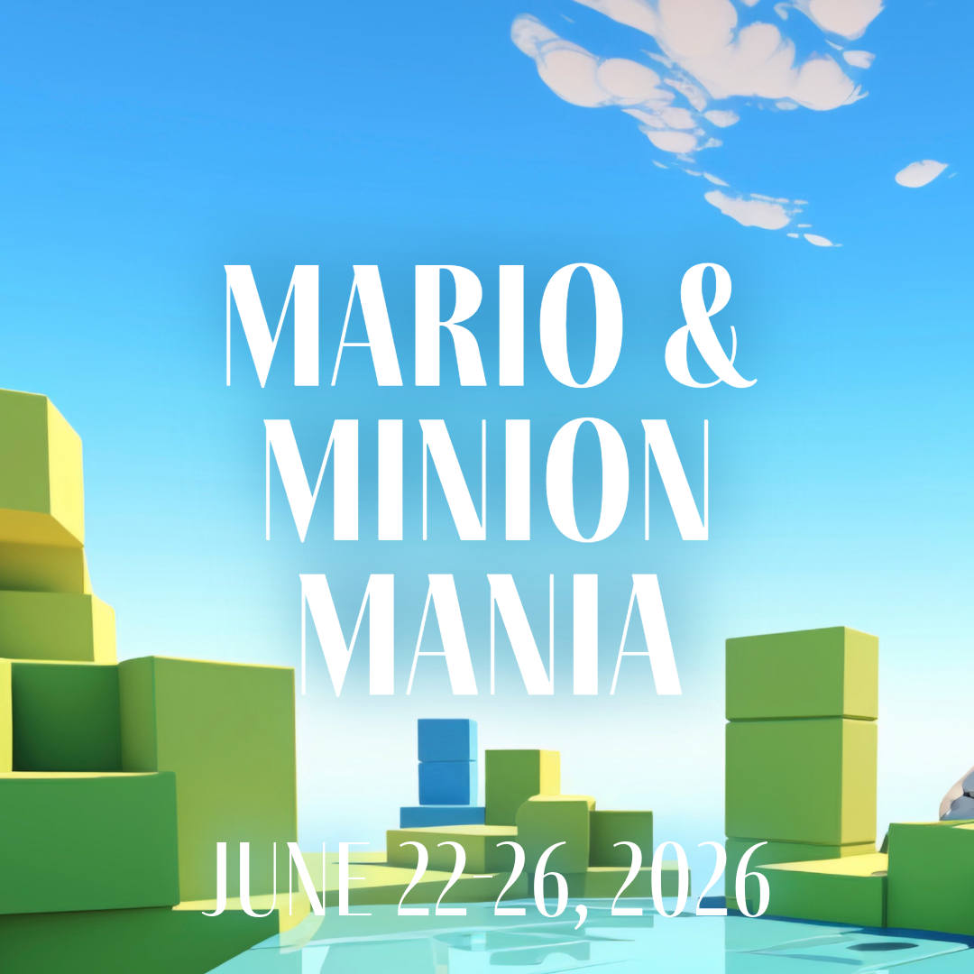 Campers will sing, dance, and act their way through the Mushroom Kingdom alongside Mario and his mischievous Minion friends, creating a high-energy, fun-filled musical adventure full of favorite characters, catchy songs, and show-stopping performances!